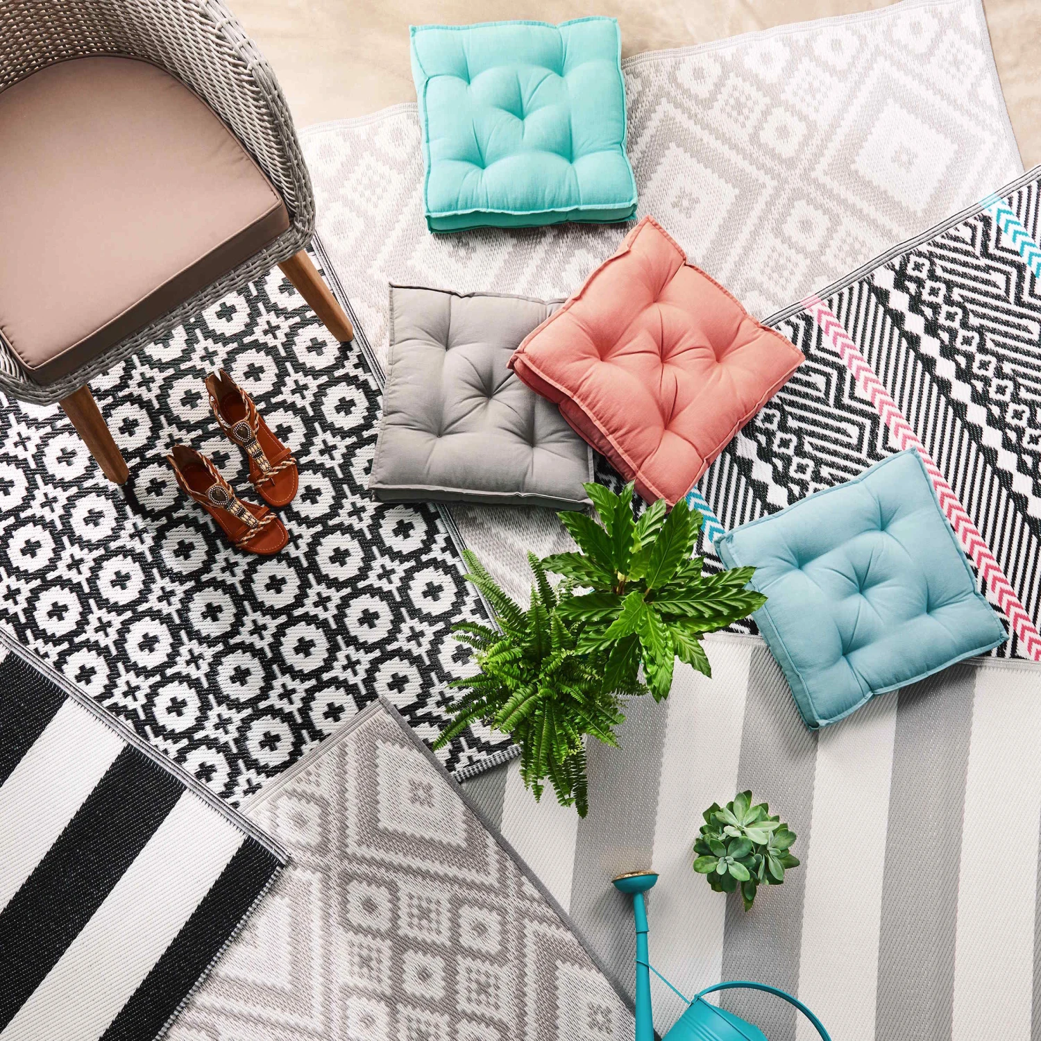 Weil Sie auf wohnlich und zugleich pflegeleicht stehen, legen Sie sich den modernen Colour Clash Outdoorteppich mit Mosaik-Muster und Bastteppich-Struktur zu Füßen. Und das nicht nur auf Ihrem Balkon oder Ihrer Terrasse, sondern gerne auch indoor im Wohnbereich. So läuft es sich drinnen wie draußen spürbar angenehm. Aus robustem Kunststoffgewebe, UV-beständig.