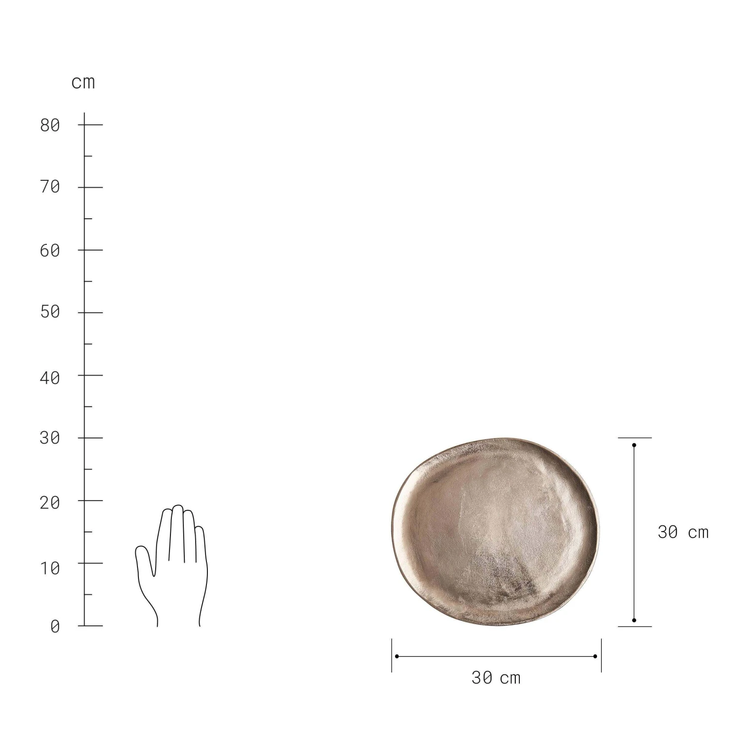 Aus einem früheren Jahrhundert könnte der Banquet-Teller Ø 30 cm mit seinem gold-farbenem Glanz und seiner strukturierten Oberfläche stammen. Und genau wie damals verschönert er die Tafel und den Raum mit seiner organischen Form. Aus Aluminium, mit Softpads an der Unterseite.