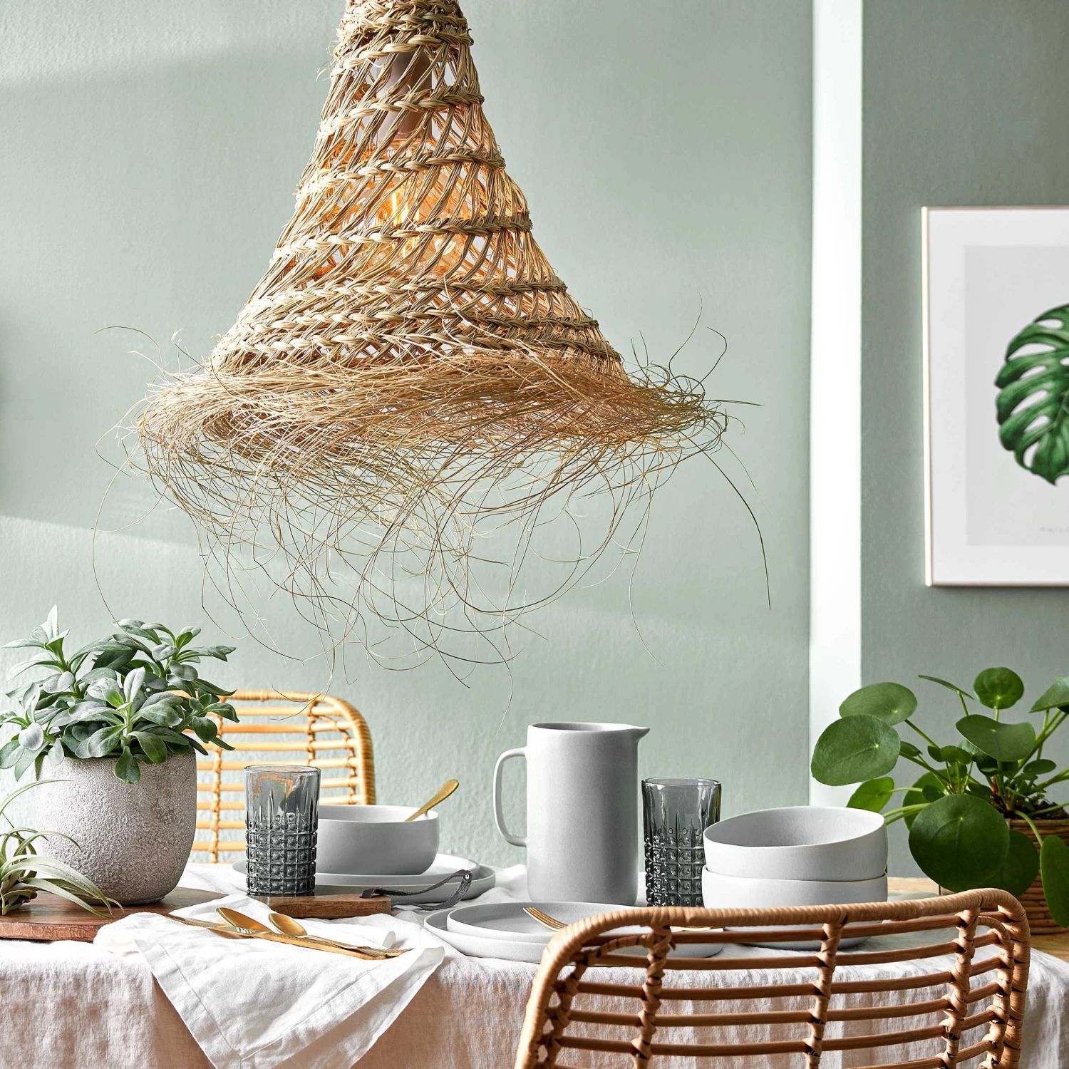 Beim Einrichten haben wir die Liebe zur Natur wiederentdeckt, und mit authentischen Materialien und Farben fühlen wir uns zu Hause so richtig wohl. Zum natürlich schönen Eyecatcher wird da der Bomas Lampenschirm 50 cm. In Tunesien von Hand aus Halfagras gefertigt (Form und Webung kann von den abgebildeten Motiven abweichen), ist er im Flur oder Wohnzimmer ein trendiges Highlight – ob mit Leuchtmittel oder als reines Deko-Objekt. In einer weiteren Größe erhältlich.