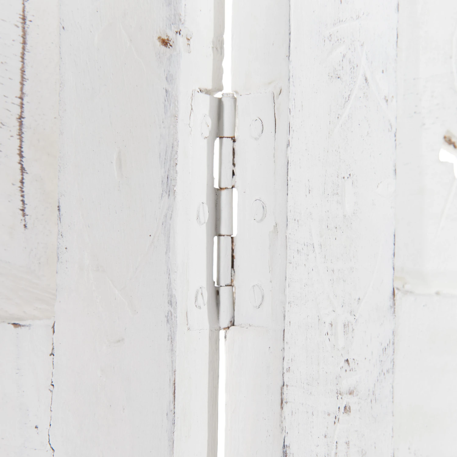 Als stamme er aus einer spanischen Finca, einer italienischen Villa oder einer portugiesischen Posada: Unser weißer Estella-Paravent mit femininen Ornamenten versehen, präsentiert sich charmant nostalgisch und aufwändig gearbeitet. Mit Liebe für das Detail. Denn er wurde von Hand gefertigt und bemalt. Ob als Raumteiler, als Sichtschutz oder Dekoelement: Der Paravent im Vintage-Look ist vielseitig nutzbar und weist deutliche Gebrauchsspuren auf.