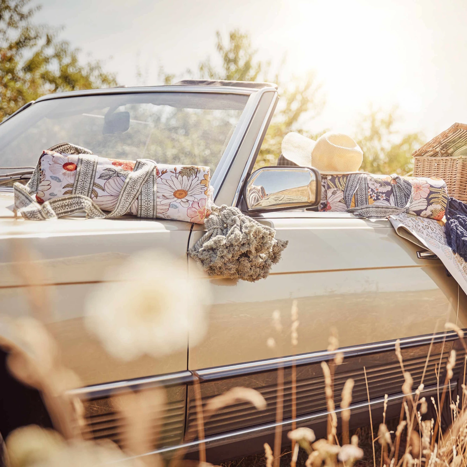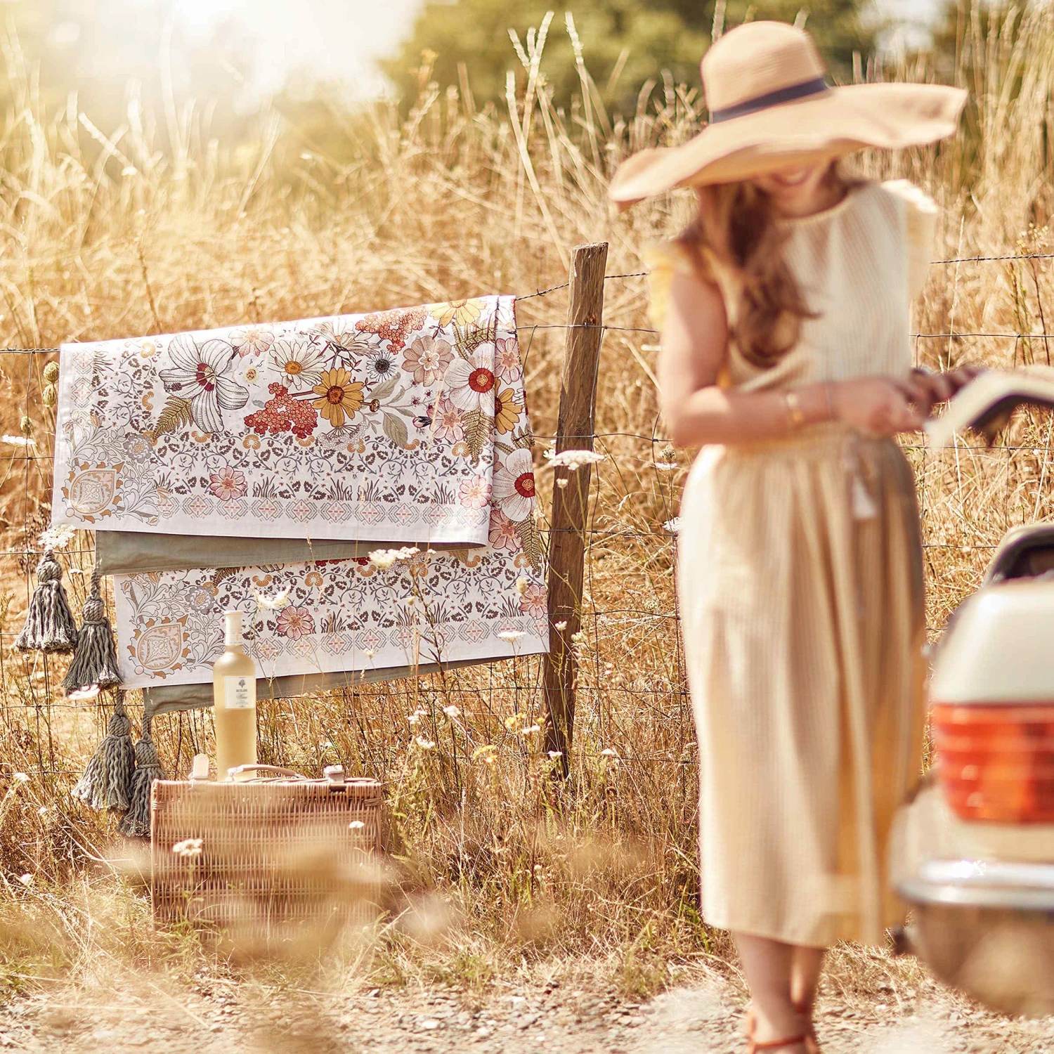 Auch wenn Sie auf der grünen Wiese oder am Strand sitzen, picknicken Sie inmitten von hübschen Blumen mit der Between Flowers Picknickdecke. Diese dekorative Picknickdecke im angesagten Boho-Stil mit Troddeln bringt praktischerweise einen optisch perfekt harmonierenden Tragegurt mit, so dass Sie sich die Decke einfach umhängen können. Aus reiner Baumwolle, Rückseite uni, in Creme und Blau erhältlich.
