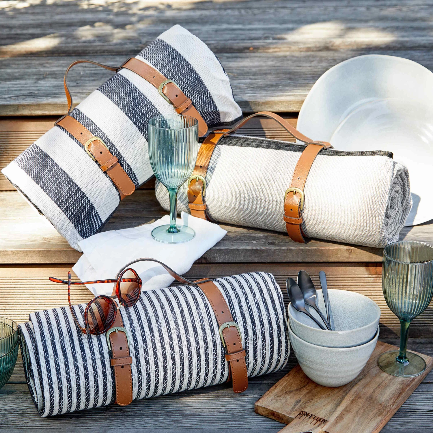 Die Umgebung zu Fuß erkunden – das steht gerade hoch im Kurs. Für die Rast zwischendurch nehmen Sie die gestreifte Wanderlust Picknickdecke mit. Neben einem praktischen Tragegurt bietet sie eine beschichtete, wasserabweisende Unterseite, so dass Sie auch auf Wiesen und im Wald geschützt sitzen. Bei Bedarf lässt sich die Picknickdecke auf 30°C waschen. Weitere Varianten erhältlich.