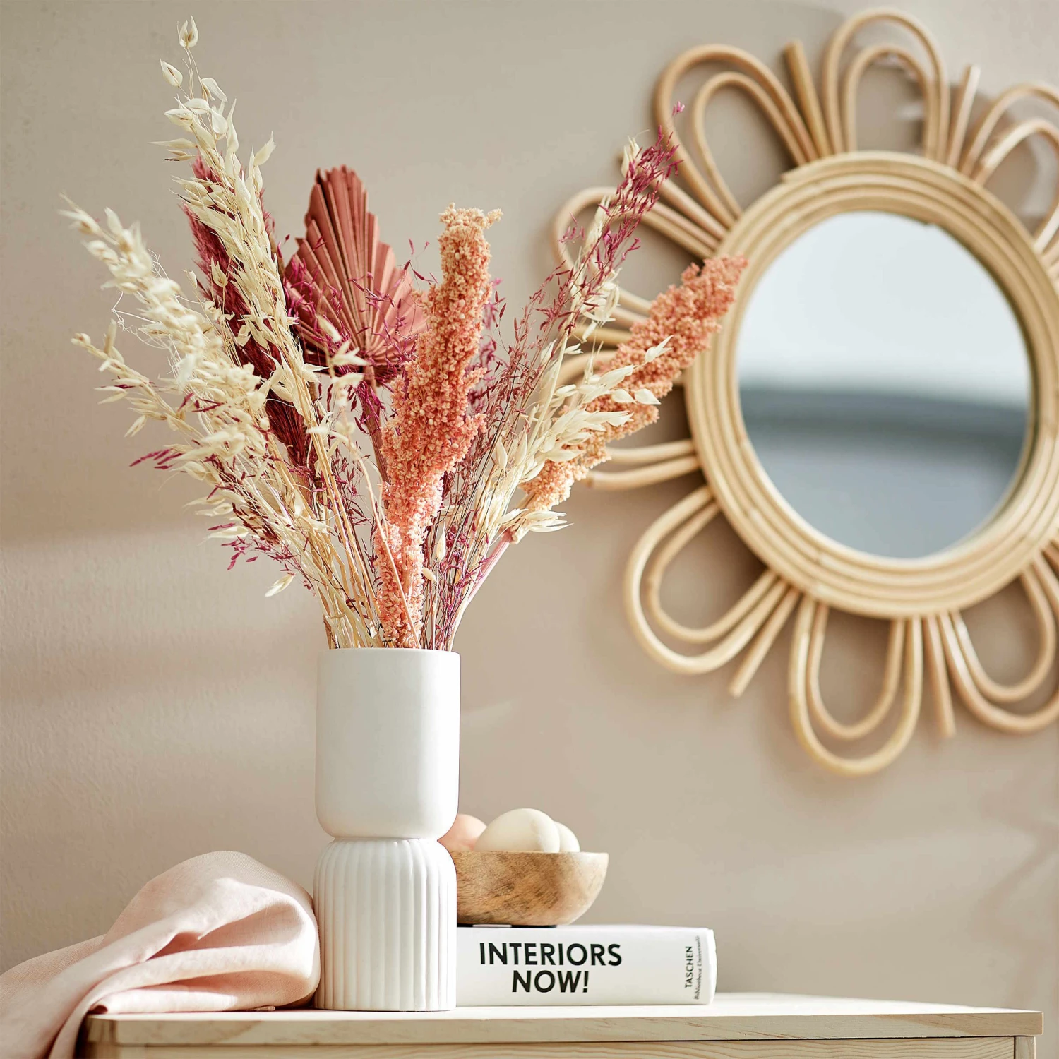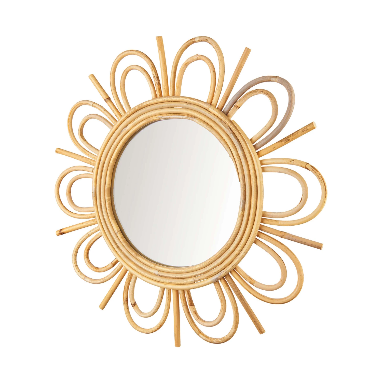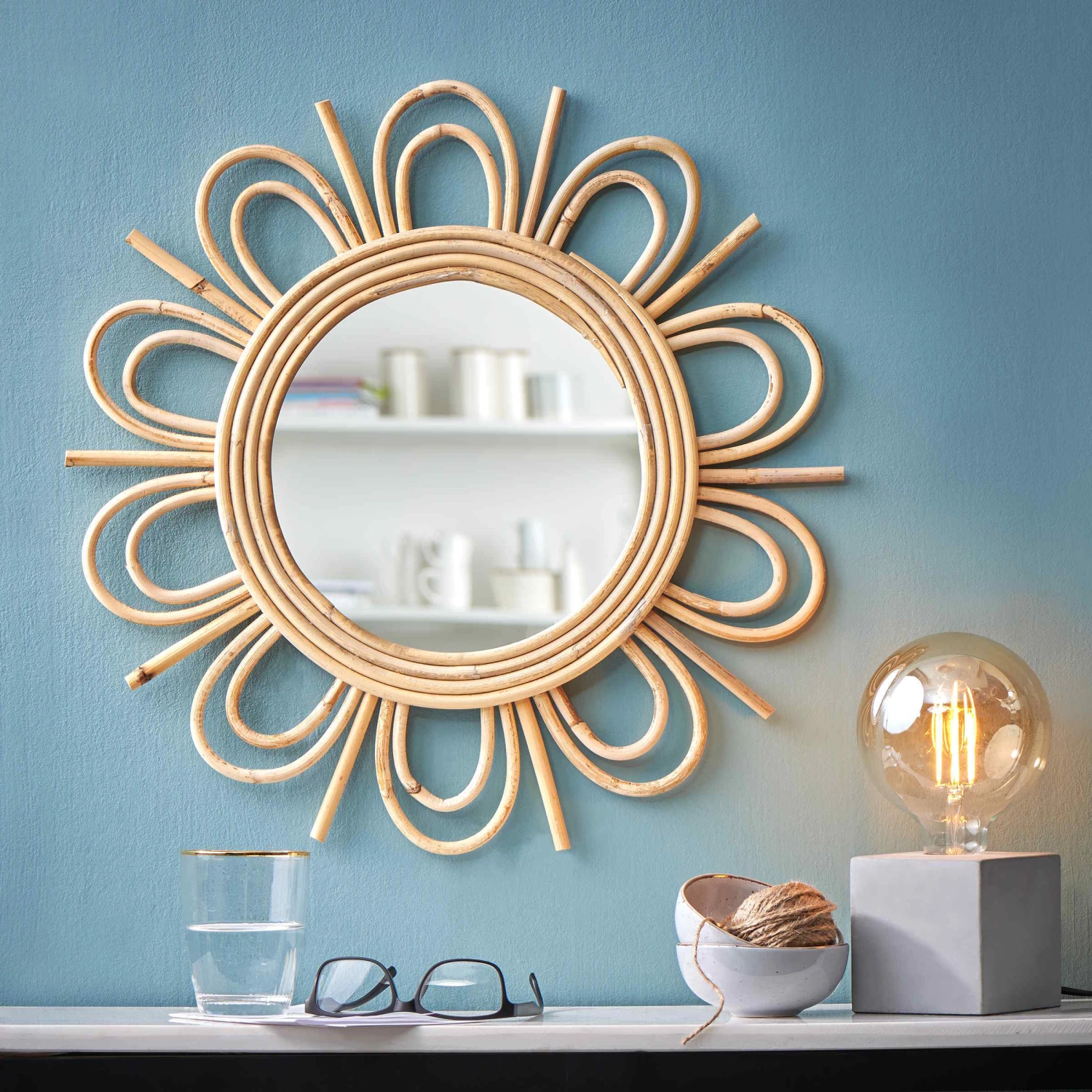 Ein bisschen Ibiza-Flair für Ihre Wohnung: Der handgearbeitete Cottage Rattan Spiegel blumenförmig spiegelt das mediterrane Lebensgefühl wider, sonnig und voller Natürlichkeit. Solche Boho-Akzente stehen Ihrem Flur und wirken ebenso dekorativ im Wohn- und Schlafbereich. Weitere Varianten erhältlich.